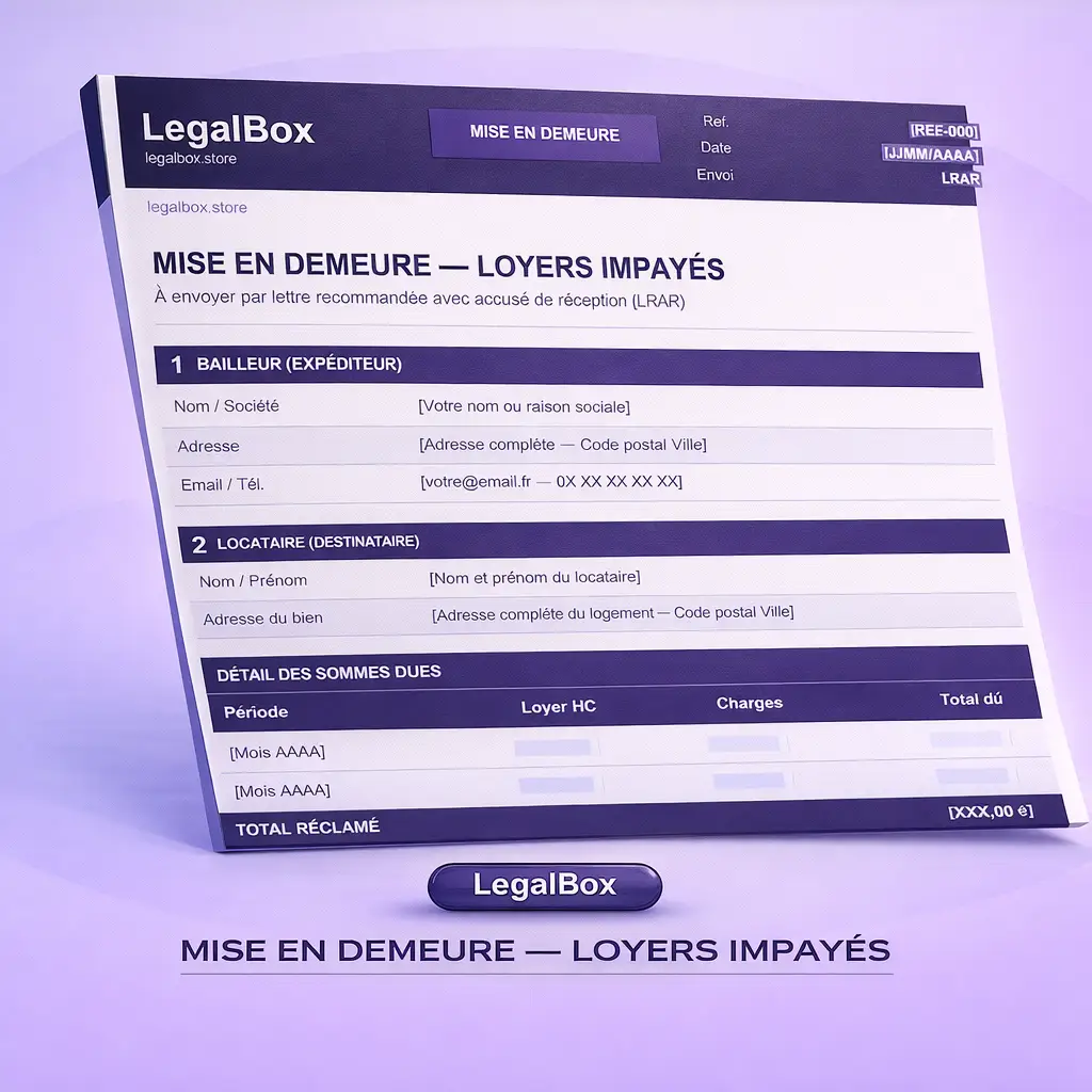 La Mise en Demeure pour Loyer Impayé est une lettre formelle adressée au locataire défaillant avant tout recours judiciaire. Ce modèle PDF fillable a une valeur juridique et constitue la première étape de la procédure d’expulsion.